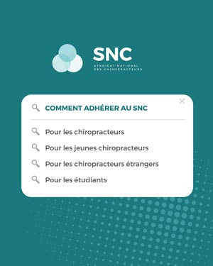 J’ai rejoins le SNC pour contribuer aux décision concernant la chiro en France. Je suis écoutée et ma voix compte dans chacune des décisions. C’est un point important pour moi.